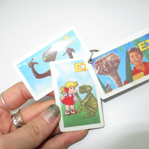 | 商品説明 | ビンテージのE.T.のブートのキーホルダーです!大きさは約6.5センチです。プラスチック素材のカードが5枚付いています!裏表で絵柄が違います。変で可愛いです! |