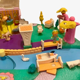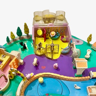 | 商品説明 | 90年代のビンテージのポーリーポケットの街です!レバーを動かすと、おうちの中のベッドが動いたり、扉が開いたり、船が動いたりします!可愛いです! |